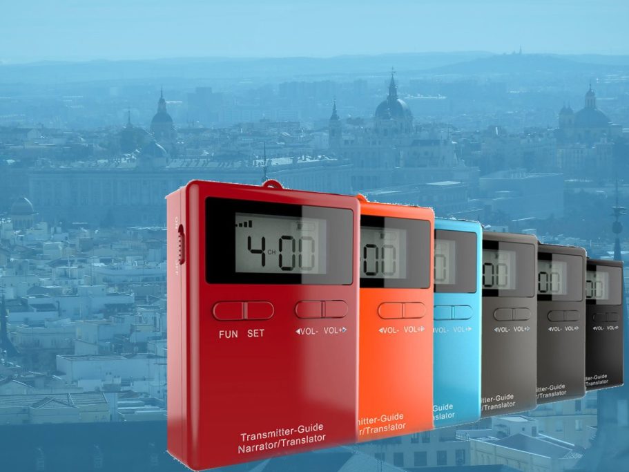 Se trata de un sistema inalámbrico que cuenta con un aparato transmisor y micrófono (para el guía/orador) y tantos receptores y auriculares como sean necesarios. Nuestra tecnología permite una comunicación clara y efectiva entre el guía y los participantes de la actividad.